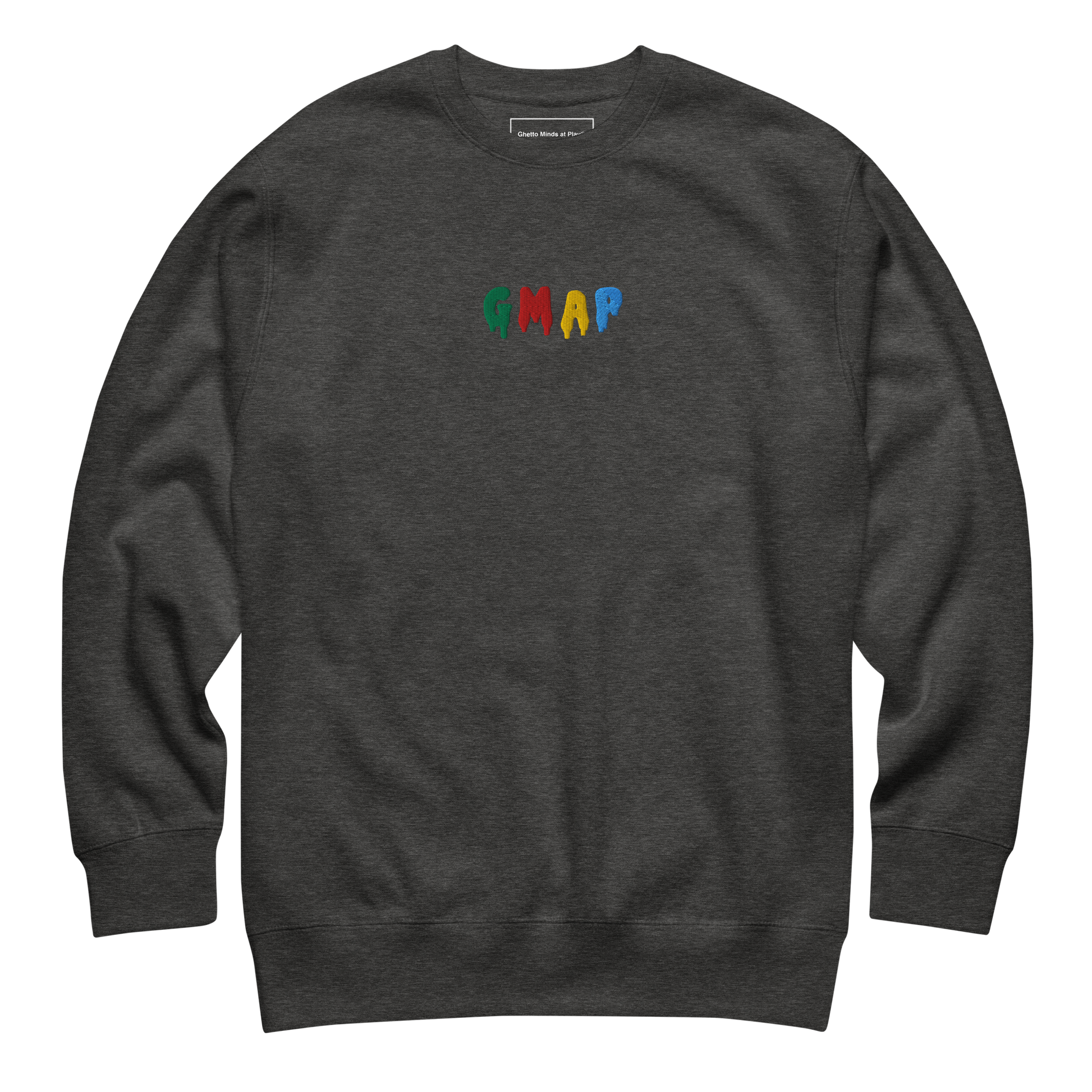 Embroidery stitched on logo of GMAP in "COLORS" on front with a custom "Ghetto Minds at Play®" inside label print (tagless label).